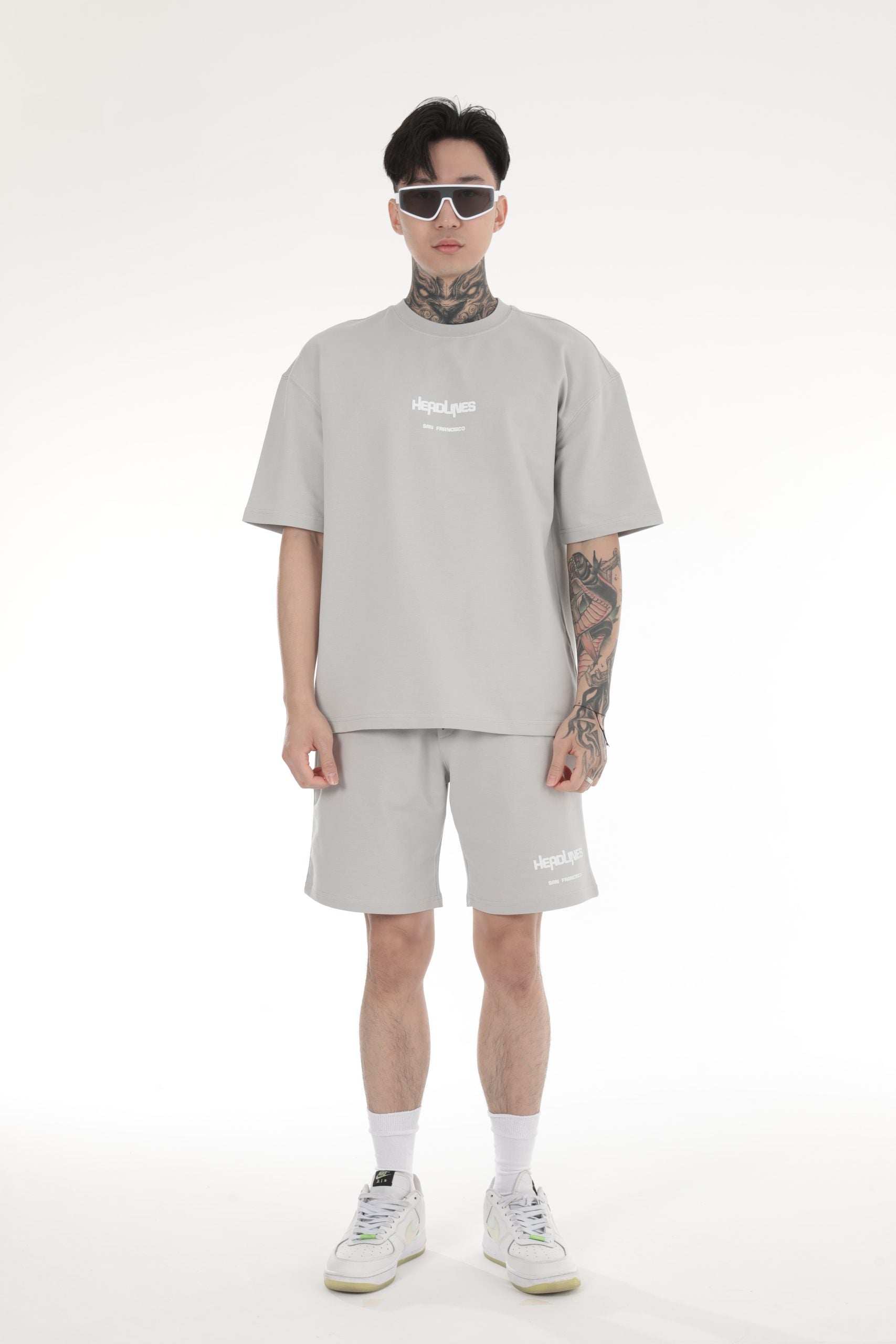 ZWEITEILER HEADLINES BEDRUCKTES OVERSIZE T-SHIRT UND SHORTS
