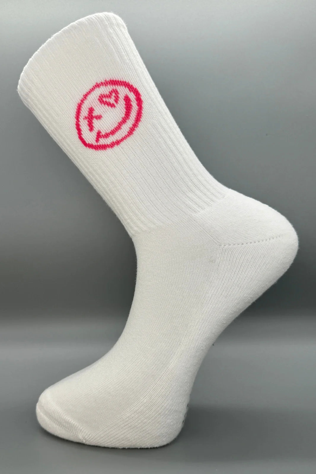 Hurletth Tennissocken mit Rosa Smiley-Muster – One Size, Stil & Komfort